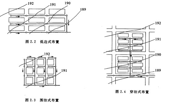 污水支管的布置形式分為低邊式、固坊式和穿坊式三種。