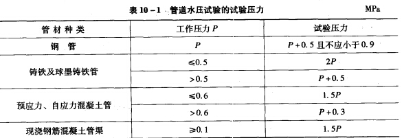 水泥管管道的試驗(yàn)壓力,一級(jí)施工圖紙均注明要求。如果沒(méi)有注明,可按我10-1采用。